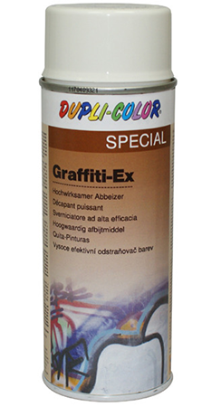 MOTIP DUPLI-COLOR Graffiti-Ex (in der 400 ml Sprühdose) ist ein hochwirksamer Abbeizer gegen unerwünschte Wandschmierereien und Graffitis. Die Anwendung auf fast jedem Untergrund möglich, wie z. B. Mauerwerk, Ziegelsteinen, Stein- und Betonflächen, Marmor-, Asphalt-, Glas-, Metall- und Holzflächen.