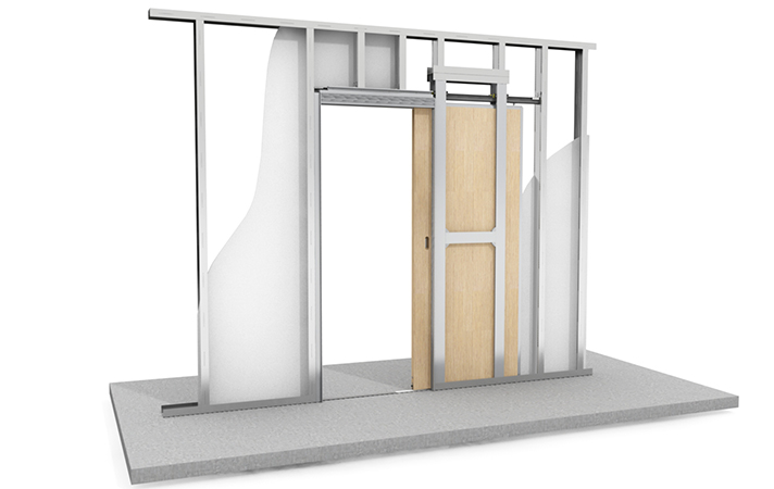 Das neue Knauf Pocket Kit Schiebetürsystem lässt Schiebetüren problemlos in der (Trockenbau-)Wand verschwinden. Die Türen sind damit nicht nur besonders komfortabel und dekorativ, sondern auch extrem platzsparend. Ideal für Küche und Bad - wo Platz am dringendsten gebraucht wird. Mit einer in der Wand versenkten Tür wird das Wohnambiente durch Originalität und Eleganz aufgewertet. Oberflächen und Dekore der Türblätter (Glas und Holz) entsprechen dabei denen traditioneller Drehtüren bzw. Innenraumtüren. Die Harmonie mit den umgebenden Einrichtungselementen bleibt erhalten. Der Schiebetüren-Einbausatz Pocket Kit in Kombination mit Knauf Ständerwänden ist eine elegante Lösung, das hochwertige Schiebetürsystem verschwindet im Wandhohlraum.