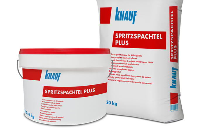 Spritzpachtel Plus ist ein kunststoffgebundenes pastöses Spachtelmaterial, das eine auf seine Anwendung abgestimmte Kombination feinteiliger Calciumcarbonat-Füllstoffe und Stellmittel enthält. Das Produkt für gleich drei Anwendungen: Es kann eingesetzt werden zur tapezier- und beschichtungsfähigen Spachtelung von Wänden und Decken im Innenbereich, für Oberflächenqualitäten Q3 bis Q4 auf Gips- oder Gipsfaserplattenuntergründen und zur Einbettung von Flächenarmierung auf Gipsplatten und anderen üblichen Untergründen.