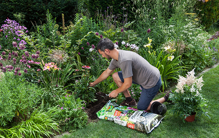 • Qualitäts-Blumenerde (auch im Pflanztopf)