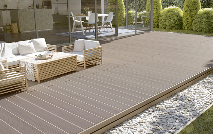 Das Galanda Kombidielen-Programm bietet viele kreative Möglichkeiten rund um's Haus. Das Programm unterscheidet in 16 mm und 21 mm starke Bodendielen. Beide sind in den Farbtönen "Terra" und "Graphit" erhältlich und beidseitig einsetzbar.
