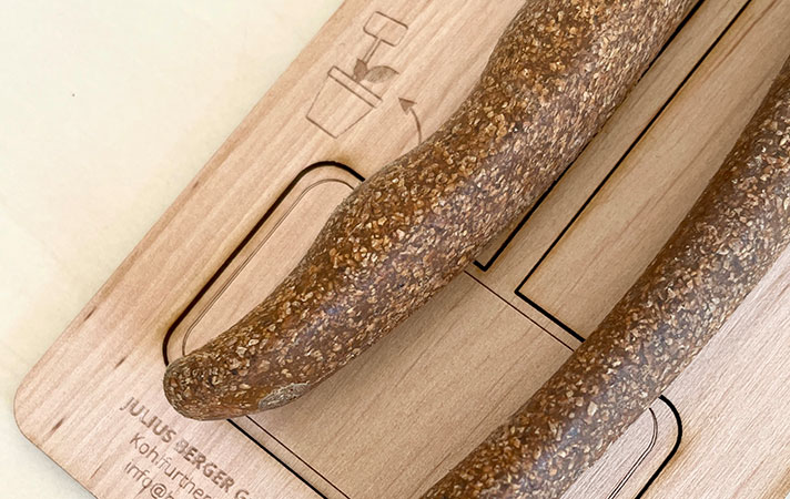 Neben dem natürlichen Griffmaterial besitzt die Handschere K 1200 ein weiteres Extra: die ökologische Verkaufsverpackung mit kleinem Gimmick. Der gelaserte Sperrholz-Warenträger enthält ein praktisches Pflanzschild.