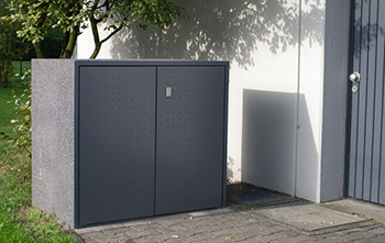 Die Qualität und Haltbarkeit der Produkte ist stets das wichtigste Gütekriterium - egal ob beim Einfach-, Doppel- oder Dreifachschrank. Die klassischen Müllboxen gibt es in Volumenfassungen bis 120 l und 240 l. Unterschiedliche Schließsysteme (optional) können bei Bedarf einen ungewollten Fremdeinwurf verhindern.