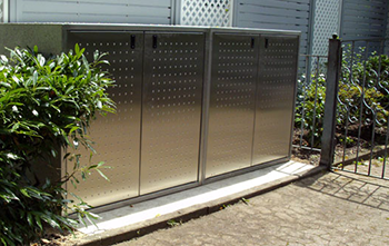 Für Mehrfamilienhäuser bietet Lenz Müllcontainerboxen (für unterschiedlichste Müllgroßbehälter) in unterschiedlichen Designs.