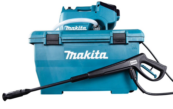 Der Akku-Hochdruckreiniger DHW080 aus dem Hause Makita ist ein leistungsstarker und vielseitiger Hochdruckreiniger, der von 2 x 18V Akkus und einem bürstenlosen Motor angetrieben wird. Er ist mit einem transportablem 50 Liter Wassertank ausgestattet und somit auch für Orte geeignet, an denen keine Wasserversorgung zur Verfügung steht. Der Hochdruckreiniger kann aber selbstverständlich auch an einen Wasserhahn angeschlossen werden.
