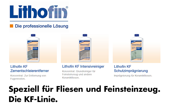 In der folgenden Übersicht finden Sie die optimal abgestimmten Lithofin-Produkte aus der KF-Linie zum (Bauend-)Reinigen, Schützen und Pflegen Ihrer Keramikfliesen.