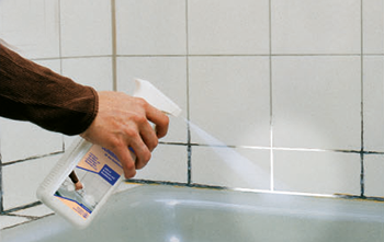Im Anfangsstadium lässt sich Schimmel verhältnismäßig einfach von Silikonfugen entfernen, da er sich noch auf der Oberfläche befindet. Hierzu die befallenen Stellen mit Lithofin KF Schimmel-EX satt einsprühen und nach 10 Minuten mit Wasser abspülen. Eine Bürste oder ein harter Schwamm erleichtern die Reinigung.