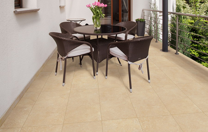 Eine tolle Platte für mediterrane Stimmung: Die freundliche Keramik-Bodenplatte Galanda® Grimaldi ist mit ihrem warm-beigen Farbton ein stilsicherer Blickfang für Terrasse und Balkon. Die 2 cm starke Serie ist erhältlich in zwei modernen Größen (60x60x2 cm und 90x60x2 cm) und trotz ihrer hellen Farbe unempfindlich gegen Schmutz und Witterungseinflüsse.