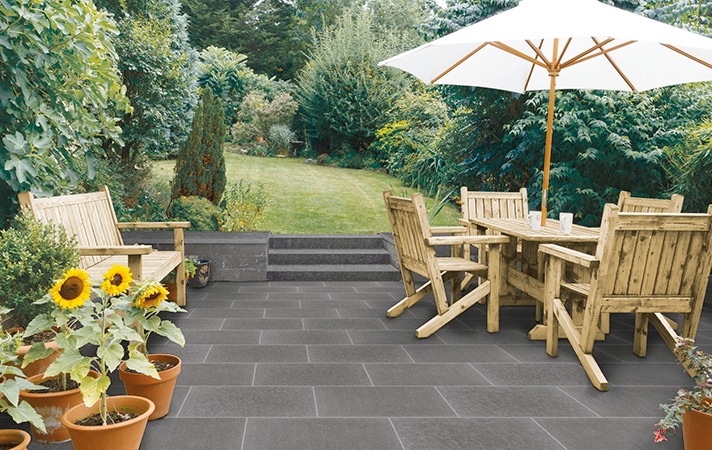 Das Galanda® Naturstein-Programm umfasst drei unterschiedliche Farb-Linien für die individuelle Gestaltung rund um Haus und Garten – Platten, Pflaster, Palisaden, Stufen und mehr.