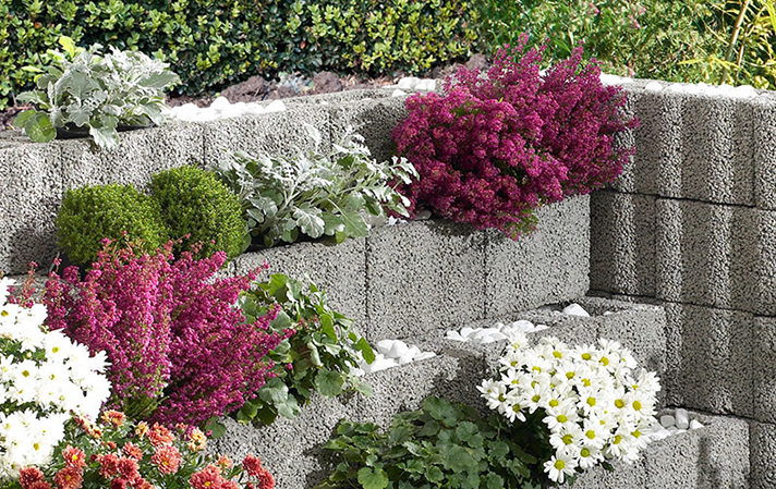 Die einfache Bepflanzbarkeit beider Pflanzsteine sorgt einerseits für einen attraktiven und individuellen Gestaltungsspielraum. Andererseits werden die Bodenerosion und das Abschwemmen des Mutterbodens durch das Entstehen kleiner Pflanzebenen verhindert. Wichtig ist, dass das Füllmaterial sickerfähig bleibt, damit sich kein Nässestau bildet und ggf. Frostschäden entstehen.