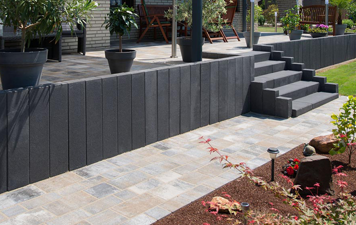 Zu Betonsteinen, die auch zur Hangbefestigung im Garten eingesetzt werden, zählen unter anderem auch L-Steine, Stuttgarter Mauerscheiben, Schalungssteine und Betonpalisaden.
