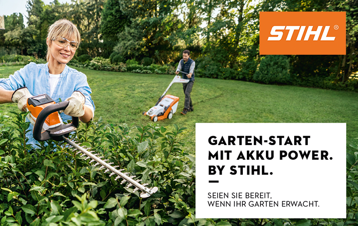 Die Garten-Start-Wochen stehen wieder ganz im Zeichen der STIHL-Akkutechnik. Erleben Sie beispielsweise den neuen Freischneider aus dem AK-System oder die besonders handlichen Geräte aus dem AS-System für die Grundstücks- und Gartenpflege, die besonders für private Gartenfreunde interessant sind.