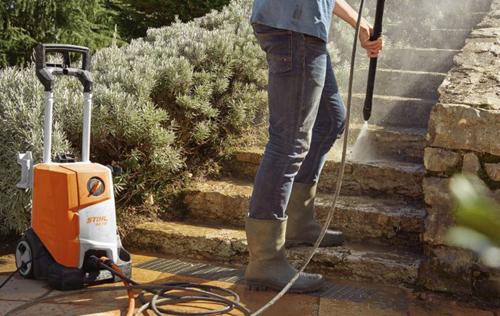 Der STIHL Hochdruckreiniger RE 110 bietet alles was man braucht, um dem Schmutz auf Terrassen, Wegen & Co. "an den Kragen zu gehen":