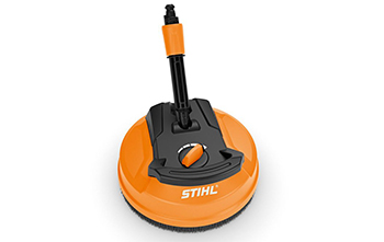 Mit dem Flächenreiniger RA 90 (Ø 255 mm inklusive Druckverstellung) lässt sich der Hochdruckreiniger einfach für die schnelle, spritzfreie Reinigung mittelgroßer Flächen optimieren.
