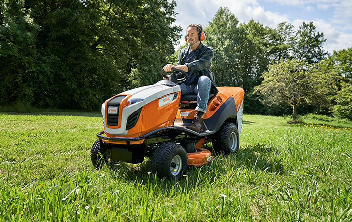 Wo Sie mit klassischen Rasenmähern an Ihre Leistungsgrenzen stoßen, sind STIHL Aufsitzmäher die richtige Wahl. Egal, ob Sie einen Rasentraktor durch verwinkeltes Terrain manövrieren oder große Rasenflächen machen. Mit der cleveren Kombination aus Leistung und Komfort mähen Sie auf dem privaten Grundstück oder z.B. als professioneller Platzwart Grünflächen von bis zu 10.000 m². Ein Rasentraktor mit Fangkorb oder ein Aufsitzmäher mit Seitenauswurf, der den Grünschnitt direkt als Dünger auf dem Rasen verteilt, unterstützen Sie effizient bei Ihrer Arbeit. So macht die Rasenpflege und wird selbst auf riesigen Sportplätzen oder Parkanlagen überschaubar.