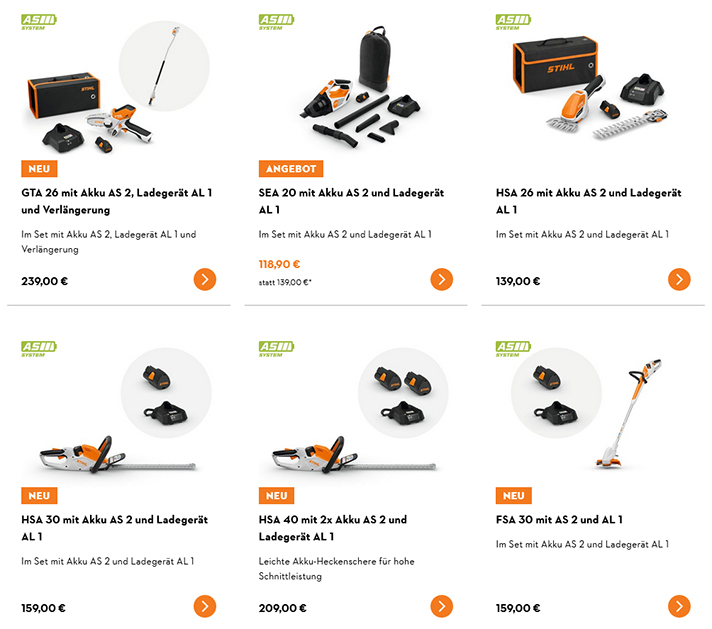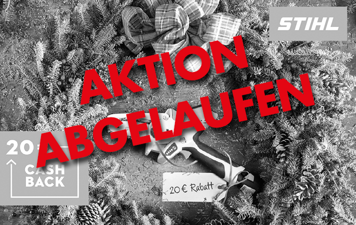 Im Aktionszeitraum vom 18. November bis 23. Dezember 2024 erhalten Sie beim Kauf eines STIHL Gerätes oder eines Sets aus dem Akku AS-System einen Rabatt von 20 €.