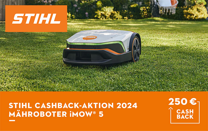 Profitieren Sie von 250,- Euro Cashback auf den Mähroboter iMOW® 5 aus dem Hause STIHL.