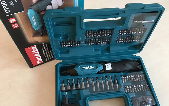 Nicht nur für Profis, sondern auch für Heimwerker mit hohem Anspruch an gutes Werkzeug ist der Makita Akku-Knickschrauber eine praktische Ergänzung der Werkstattausstattung. Mit dem 81-teiligen Zubehör werden direkt alle gängigen Bitaufsätze mitgeliefert. Sie befinden sich in dem stabilen Kunststoffkoffer übersichtlich und gut griffbereit angeordnet.