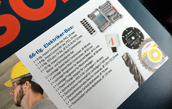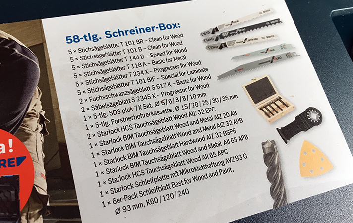 Lassen Sie sich das nicht entgehen: Hochwertiges Maschinen-Zubehör aus dem Hause BOSCH, das Sie für Ihre Arbeit benötigen und das fertig zusammengestellt, in einem robusten BOSCH Koffer ordentlich vertaut, auf den Einsatz wartet. Aber nicht genug! Wir legen noch eine Gedore Werkzeugbox als kostenlose Zugabe "oben drauf".