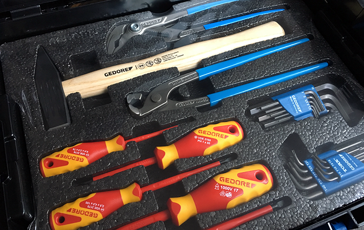 Die Elektriker-Box – im Aktions-Set für € 193,19 netto (€ 229,90 UVP) – statt Netto-Gesamt-VK € 405,76 plus hochwertige Gedore-Werkzeugbox kostenfrei "oben drauf".
