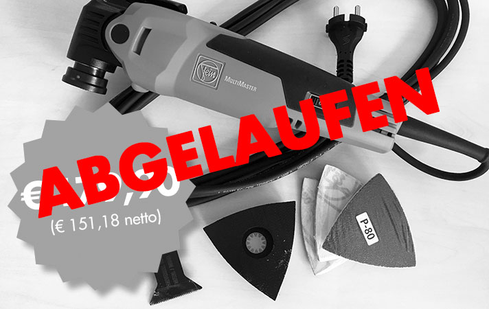 Wir bieten Ihnen den bewährten Fein MultiMaster FMM 350 QSL XS zum sensationellen Aktionspreis von nur € 179,90 brutto (€ 151,18 netto) – solange der Vorrat reicht.