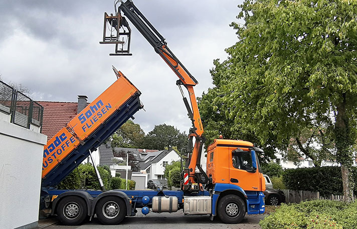 Mit unseren Baustoff-Fahrzeugen bringen wir alle Materialien zuverlässig auf jede Baustelle - heben und kippen. Mit nur einer Fuhre können wir flexibel sowohl Schüttgüter, als auch Hebegüter anliefern. Mithilfe des hydraulischen Ladekrans werden die Materialien schnell und präzise be- und entladen.