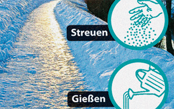 So schön und romantisch Eis auch sein kann, auf dem Gehweg möchte man es nicht haben. Das Schnee- und Eis-Weg von Hotrega ist eine 2-in-1-Lösung gegen Eis und Schnee. Zur Anwendung als Flüssig-Taumittel wird das Granulat in Wasser gelöst und mit der Gießkanne aufgebracht. Darüber hinaus kann es aber auch wie jedes andere Streumittel eingesetzt werden. Durch selbsttätige Wärmeentwicklung werden vereiste Flächen blitzschnell aufgetaut und bis zu 3 Tage vor Wiedervereisung geschützt.