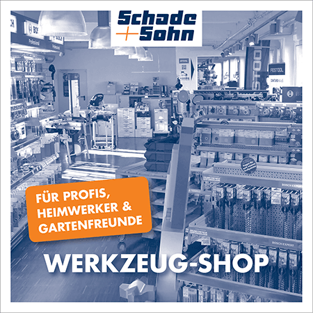 In dem modernen Werkzeug-Shop präsentiert der alteingesessene Bau(stoff)spezialist Schade + Sohn eine außergewöhnlich große Auswahl an hochwertigen Elektro-, Akku- und Benzinwerkzeugen sowie den entsprechenden Zubehörartikeln für alle Einsatzgebiete rund um Haus und Garten. Wir setzen auf Topmarken, individuelle Beratung und weitreichende Serviceleistungen.