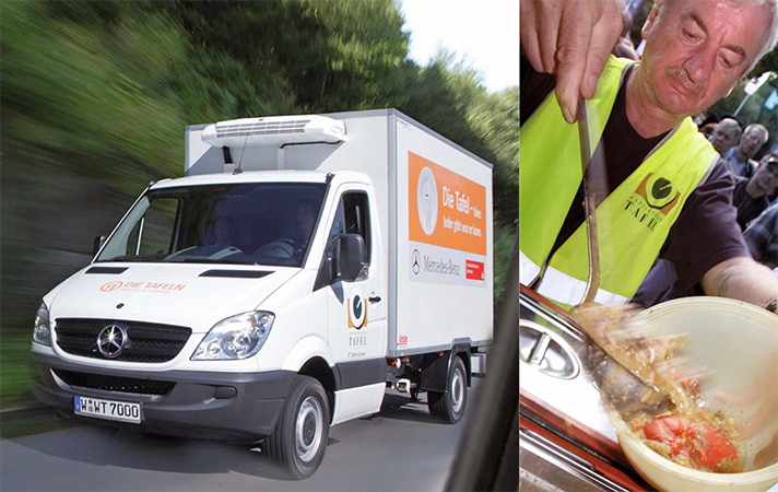 Zum Schwerpunkt der Wuppertaler Tafel gehört vor allem die Essensausgabe an Bedürftige. Gut 1.500 Portionen gehen täglich über den Tisch. Doch was ist mit den körperlich eingeschränkten Menschen, die es nicht zur Tafel schaffen oder Menschen die Medikamente benötigen? Auch diese Personen werden versorgt! Genutzt werden dafür aus Spenden finanzierte Fahrzeuge (Bullis + LKW, Kühl-LKW, Kühl-Sprinter etc.). An dieser Stelle sind Sponsoren unabdingbar! Schade + Sohn möchte diese enorm wertvollen Sozial-/Medimobile am Leben erhalten und trägt mit regelmäßigen Spenden einen Teil dazu bei. Aktuell sind 14 Fahrzeuge der Wuppertaler Tafel im Einsatz.