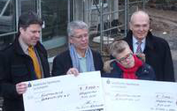 Was jedoch noch fehlte, war eine schöne, behindertengerechte Außenanlage. Schade + Sohn ist auf das Problem aufmerksam geworden. Zusammen mit den Tief- und Straßenbauunternehmen Ehlhardt spendete Schade + Sohn 5.000 Euro für das noch fehlende "Puzzleteil". Die Spendensumme wurde in Form eines Schecks direkt beim Richtfest überreicht.