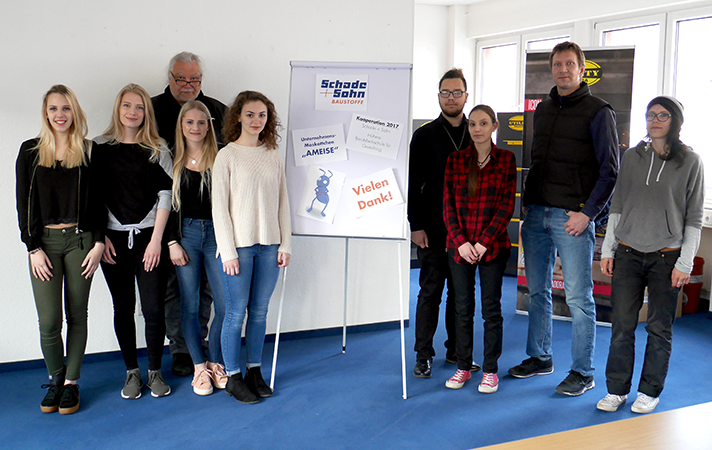 Letztendlich waren am 25. April 2017, bei dem Abschlusstreffen mit Bekanntgabe des Gewinners in der Unterbarmer Schade + Sohn-Filiale, noch zwei Agenturen im Rennen, von denen sich der Entwurf von Ramona Berg und Florian Eich gegen die vierfache Mädelspower der Klassenkameradinnen Anja Halbach, Antonia Häckel, Julia Litzcke und Diana Bagreev durchsetzen konnte. Die freundliche blaue Ameise des "Duos" überzeugte den zufriedenen Lehrer und das Jury-Team von Schade + Sohn.