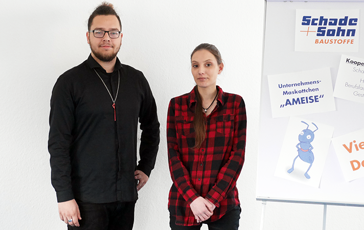 Selber einst Absolventin des 3-jährigen Ausbildungsgangs, erinnert sie sich noch heute an die Kreativität der angehenden Gestaltungstechnischen Assistenten/innen (GTA). Zusammen mit Ralf Blaschke, Diplom-Designer und Lehrer für Gestaltung am Berufskolleg am Haspel, fand sich schnell eine Klasse, die an dem berufsorientierten Praxisprojekt mit dem alteingesessenen Baustoffhändler Schade + Sohn teilnahm.