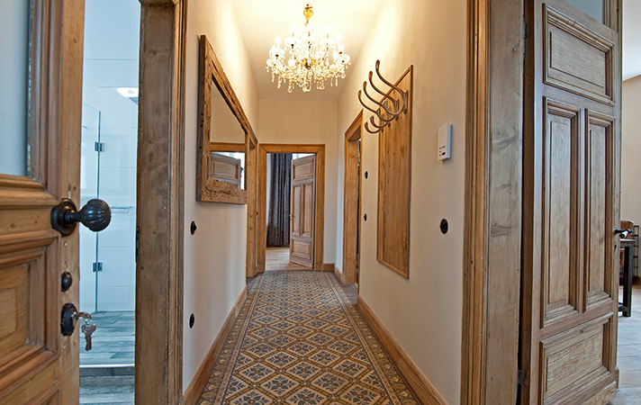 Das baufällige Gebäude wurde im Zuge der Bauarbeiten vollständig entkernt, große Teile der Fassade, Böden und Decken wurden komplett erneuert. Das Dach wurde komplett neu eingedeckt und gedämmt. "Insgesamt haben wir über 200 Tonnen Schutt herausgeschafft." so Joachim Schreiber, der gemeinsam mit seinem Partner den ursprünglichen Charakter des Hauses erhalten bzw. wieder detailgetreu hergestellt hat.