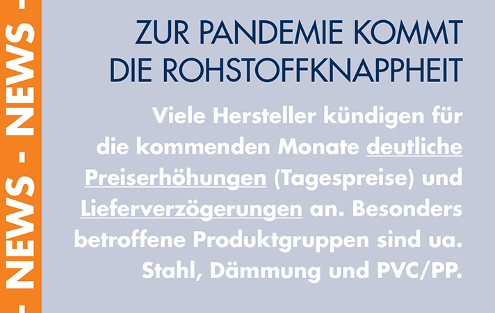Viele Hersteller kündigen daher für die kommenden Monate deutliche Preiserhöhungen und Lieferverzögerungen an. Preise gelten häufig nur noch als Tagespreise. Teilweise werden sogar keine Bestellungen mehr angenommen.