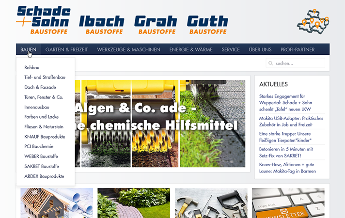 Durch eine Neustrukturierung der Themen und Produkte aus allen Bereichen des Bauens ist nun Alles, was Sie benötigen, leicht und schnell zu finden. Unsere Kontaktdaten und Ansprechpartner findet man jetzt genauso schnell wie unser Warenangebot und unsere umfangreichen Serviceleistungen.