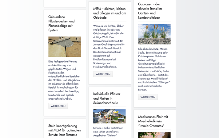 Im zweiten Step soll ein spezieller Profi-Partner-Bereich geschaffen werden, der unseren Geschäftskunden ebenso wie interessierten Privatleuten zusätzliche Informationen rund um die Gewerke des Bauens geben soll. Wir würden uns über Ihre Anregungen hierzu freuen.