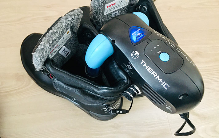 Gerade an kalt-nassen Herbst- und Wintertagen werden Schuhe, besonders die, die man bei Wind und Wetter beruflich trägt, auch mal von innen feucht. Damit feuchte Schuhe in wenigen Stunden wieder einsatzbereit sind, gibt es den THERM-IC Refresher. Der Refresher trocknet die Schuhe effizient und materialschonend von innen nach außen.