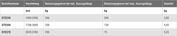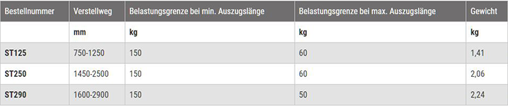Bis zu max. 150 kg belastbar garantieren die ST Stützen einen sicheren Halt auch bei empfindlichen Oberflächen.
