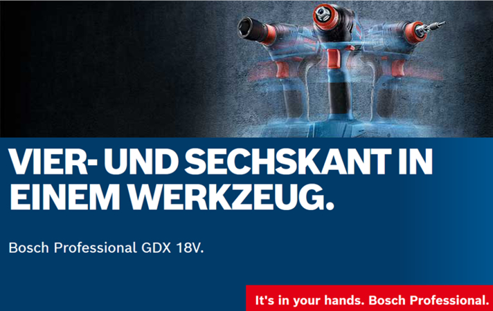 Die BOSCH Akku-Drehschlagschrauber der Serie GDX setzen neue Standards in puncto Effizienz, indem sie sowohl Außenvierkant- als auch Innensechskant-Anwendungen in nur einem Werkzeug ermöglichen. Keine Adapter mehr. Keine zwei Werkzeuge mehr.