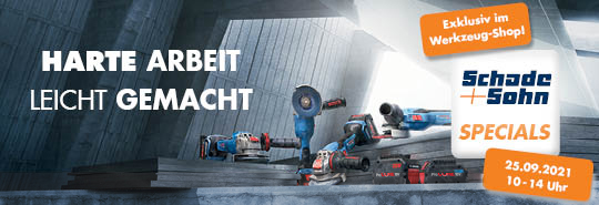 In unserem Werkzeug-Shop in Wuppertal-Barmen finden Sie sicherlich Ihren persönlichen Pro Deal! Wir haben dort eine große Auswahl an Bosch Professional-Geräten und -Zubehören. Tipp: Eine gute Gelegenheit unser Bosch Sortiment in angenehmer Atmosphäre bietet unser Schade + Sohn "SPECIAL" am 25.09.!