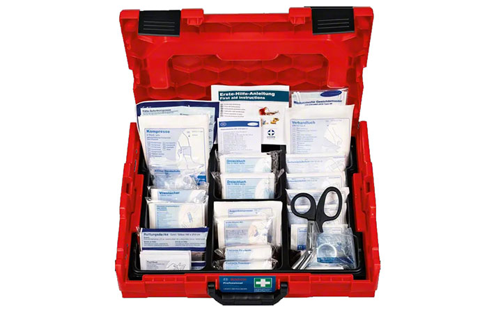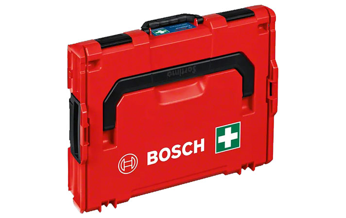 Das neue Bosch Erste-Hilfe-Set Professional mit Verbandsmaterial nach DIN 13157 in leuchtend roter L-BOXX Gr. 1/102 ist die perfekte Ergänzung einer hochwertigen Werkzeug- und Baustellenausstattung. Der genormte Inhalt der bei Profis beliebten Systainer-Box ist nicht nur bestens vor Beschädigung und Verschmutzung geschützt, sondern kann durch das innovative Klicksystem mit einer Hand bedient und bequem mit der restlichen Ausrüstung verbunden zur nächsten Baustelle befördert werden. Durch ihre Farbe ist die rote Erste-Hilfe-L-BOXX immer leicht und schnell zu finden. Zudem eignet sich die L-BOXX des Erste-Hilfe-Sets perfekt für die Aufbewahrung und den Transport mit dem Sortimo Fahrzeugeinrichtungssystem, dem Aluminium Caddy und dem Systainer-Roller.