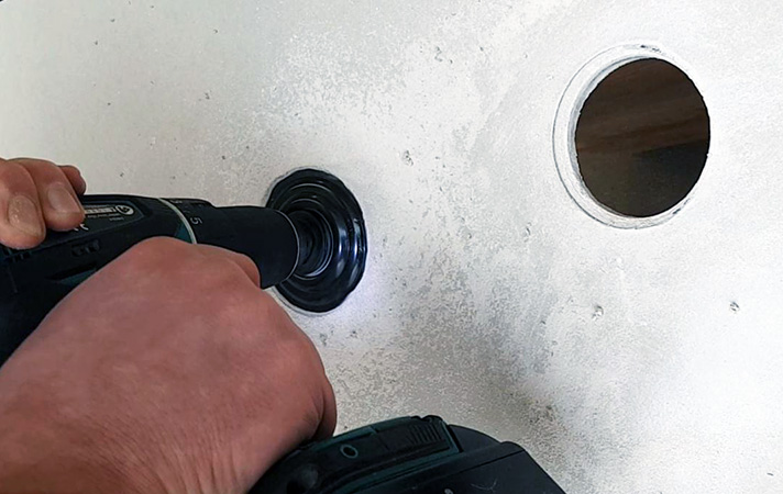 Mit dieser innovativen Lochsäge wird der Einbau von Hohlwand(steck)dosen noch einfacher, schneller und präziser. Bis zu einer Schnitttiefe von 32 mm lassen sich hiermit VDE-gerechte Einbauöffnungen mit Randvertiefung in einem Arbeitsgang hergestellen. Durch die integrierte Auswurffeder wird der Bohrkern automatisch aus der Krone geschoben. Und schon geht's an das nächste Loch...