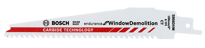 Ohne Blattwechsel Fensterrahmen – mit Stahlkern oder aus unterschiedlichen Materialien wie Holz, Aluminium und Kunststoff – durchtrennen sowie gehärtete Fensterbauschrauben entfernen, das geht mit „Endurance for WindowDemolition“-Säbelsägeblättern. Durch die konstante Zahnteilung entlang des gesamten Blattes können Fensterinstallateure unterschiedliche Materialien zuverlässig schnell schneiden. Kommt der Handwerker dabei versehentlich in Kontakt mit Gips, Mörtel oder Ziegelsteinen, halten die Blätter das problemlos aus. Im Hinblick auf geringe Vibrationen bei allen Anwendungen wurde die Länge der Blätter auf 150 Millimeter optimiert. Darüber hinaus laufen die Sägeblätter „Endurance for WindowDemolition“ konisch zu. Sie sind vorne schmaler als hinten und können dadurch auch an engen Stellen eingesetzt werden.