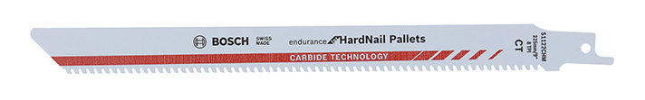 Das „Endurance for HardNail Pallets“ ist weltweit das erste Hartmetall-Säbel-sägeblatt für die professionelle Paletten-Reparatur. Immer mehr Paletten werden mit gehärteten Nägeln gebaut – mit Bi-Metall-Blättern war das Heraussägen defekter Teile bisher nur mit sehr hohem Verschleiß möglich. Hier setzt das „Endurance for HardNail Pallets“ an. Die einzelnen Hartmetall-Zähne sind im Abstand von drei Millimetern konstant gereiht und damit für die hohen Belastungen beim Sägen ausgelegt. Ein hochwertiges Bandmaterial und eine Banddicke von nur einem Millimeter machen das Blatt besonders biegsam. Darüber hinaus ist es dank einzeln aufgeschweißter Hartmetallzähne und verstärktem Schaft sehr langlebig. Das Ergebnis: Auch gehärtete Nägel werden effizient getrennt.
