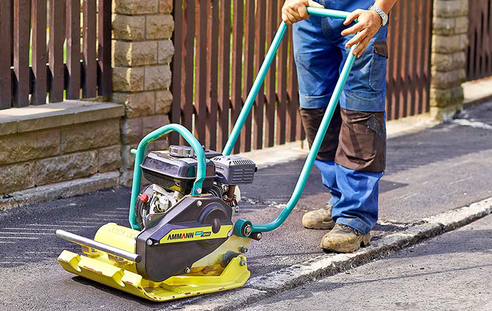 Neben großen, viele Tonnen schwere Verdichtungsmaschinen gibt es auch handliche Geräte, die z. B. bei Straßenausbesserungen, beim Verlegen eines neuen Pflasters auf der Terrasse sowie beim Auffüllen des Erdreichs nach Fundament-Ausschachtungen eingesetzt werden.