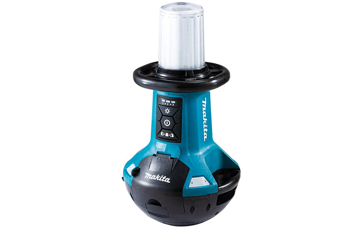 Ähnlich einer Pillone ist dieser fast 80 cm hohe Makita Baustrahler äußerst robust und leicht zu handeln. Selbst wenn er einmal "angetitscht" werden sollte, fällt er nicht gleich um, sondern richtet sich wieder eigenständig auf.