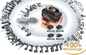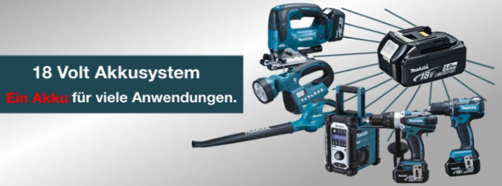 Vom 2-Gang-Akku-Schrauber über Akku-Gebläse bis hin zum Baustellenradio versorgen 18 V Li-Ion-Akkus von Makita ein breites Sortiment hochwertiger Profiwerkzeuge. Für jede denkbare Aufgabe stehen Ihnen damit extrem leistungsstarke und zuverlässige Arbeitshilfen aus dem Makita Werkzeugsortiment und dem Makita Gartenprogramm zur Verfügung. Bei über 100 Modellen findet jeder das richtige Werkzeug mit richtig Power. Besuchen Sie uns, wir beraten Sie gerne.