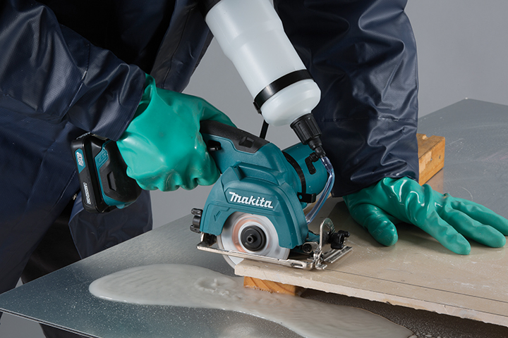 Jetzt gibt es ein überaus handliches Akku-betriebenes Gerät mit dem sich ebenso exakt wie mit dem elektrischen Fliesenschneider arbeiten lässt: Der leichte und handliche Akku-Glas-und-Fliesenschneider von Makita liegt angenehm in der Hand. Die hohe Drehzahl ermöglich schnelle und präzise Schnitte. Dank des geringen Gewichtes von 1,8 kg und dem Wassertank ist längeres Arbeiten ohne Überhitzung kein Problem. Sollte die Maschine doch mal überlastet sein greift der Überlastungsschutz. Die Führungsschiene ist aus robustem Stahl und mit einer Nickel-Legierung überzogen.