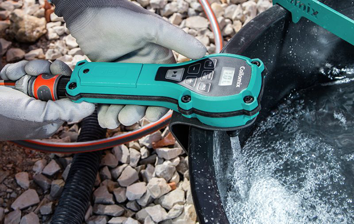 Collomix ist seit über 40 Jahren der Partner wenn es ums Mischen geht. Mit dem neuen Wasserdosiergerät AQiX lässt sich das zum Anmischen von Verarbeitungsmaterialien erforderliche Wasser nun ultra präzise, sauber, schnell und ohne weitere Hilfsmittel dosieren.